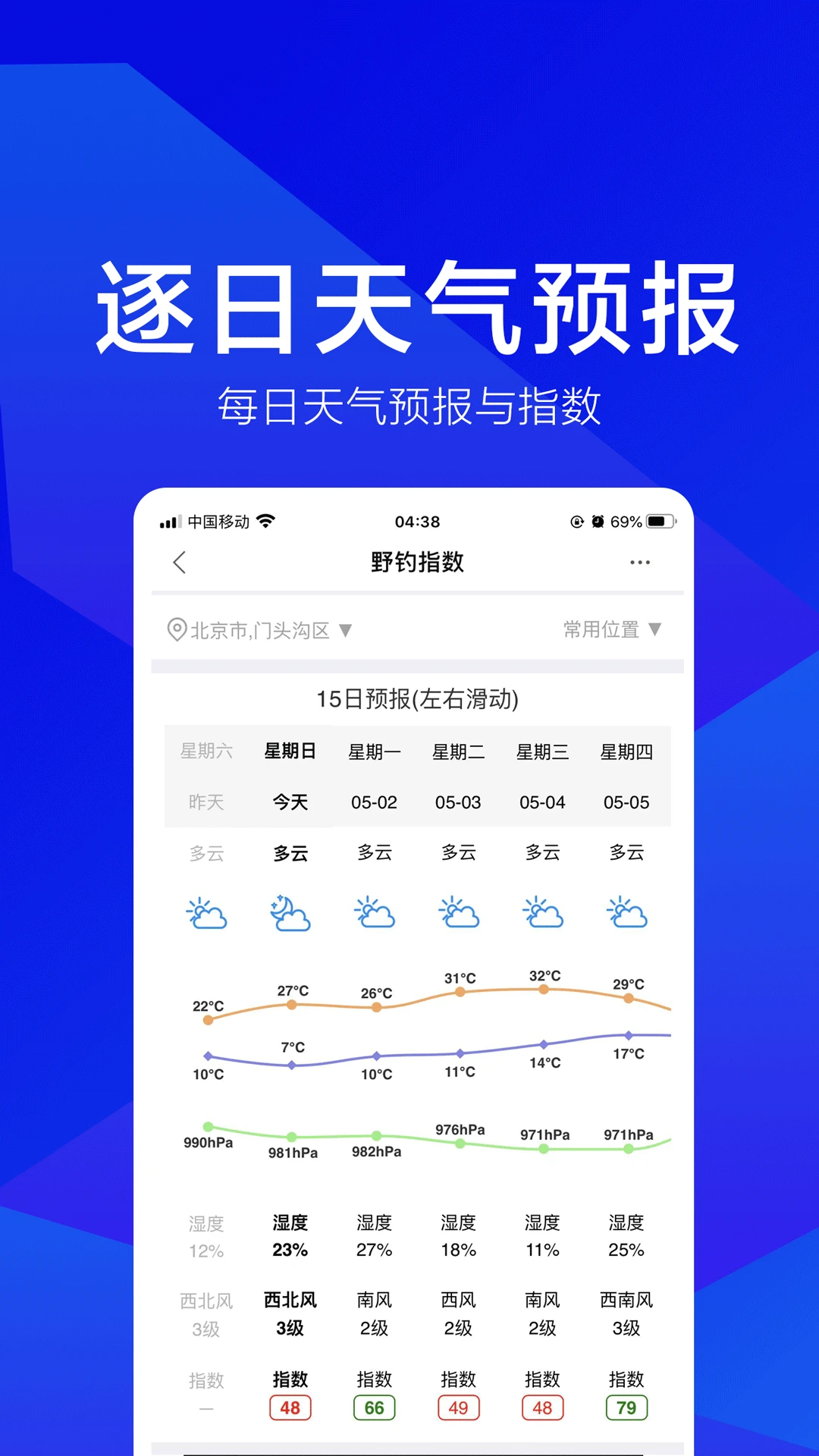 天气分析:根据天气温度、气压、水温分析鱼情。
