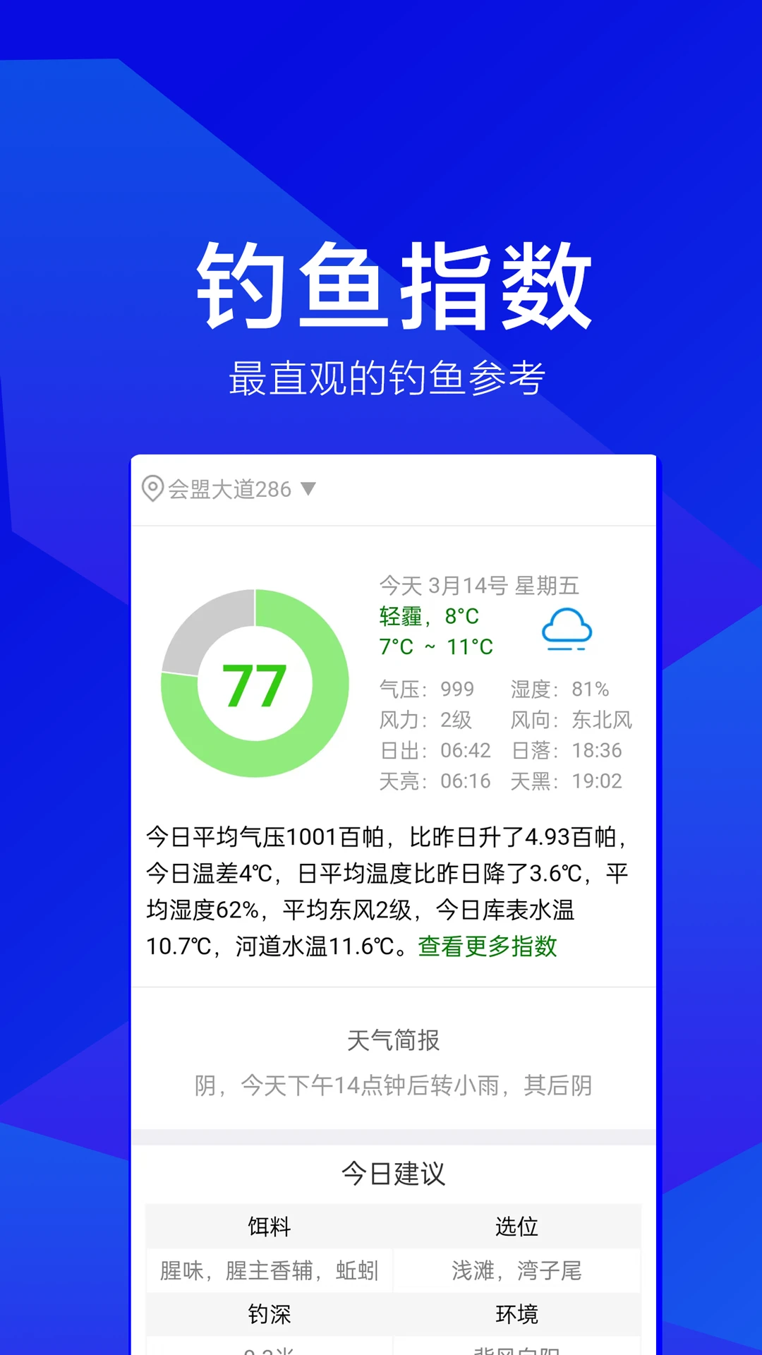 数据全面:整合气象、水文等多维度数据,提供科学可靠的垂钓建议。
