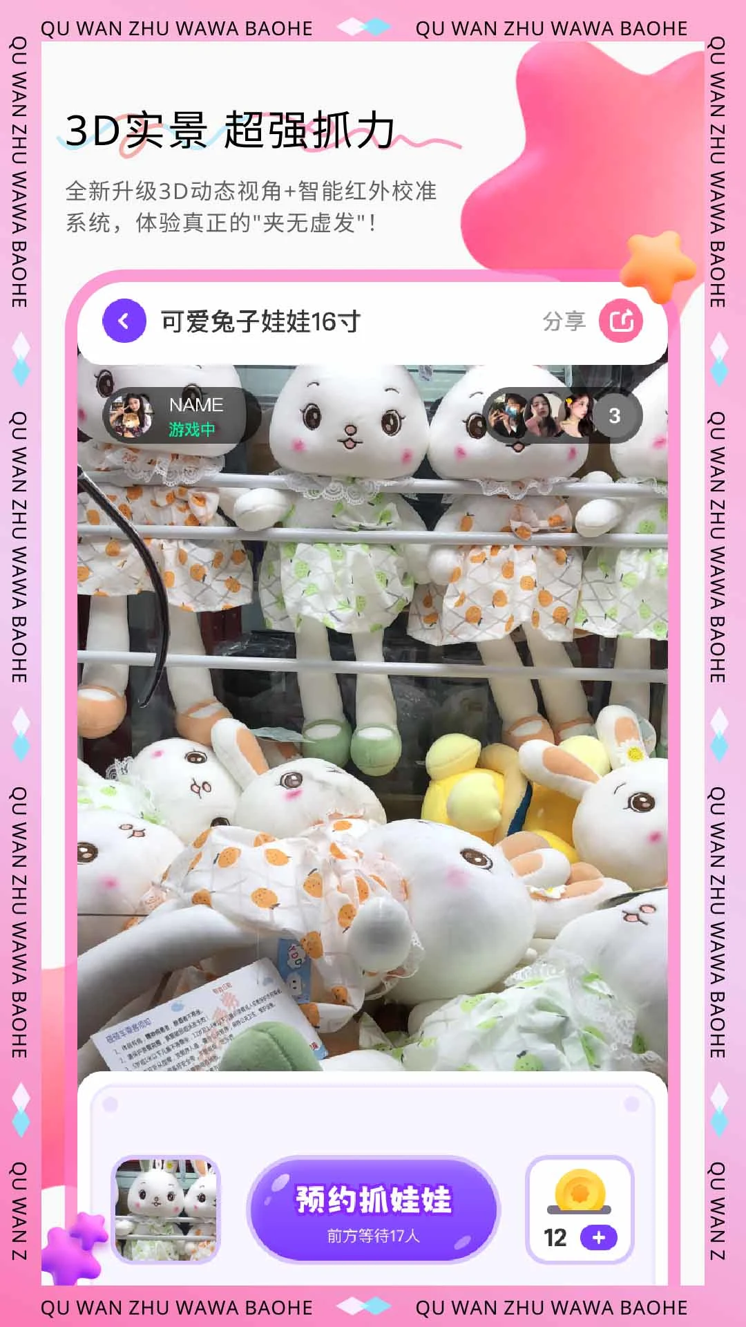 高清实景直播:利用摄像头实时直播娃娃机内情况,部分应用支持正侧面双高清摄像头,提供无死角视觉,且画面超低延迟,让玩家清晰看到娃娃位置和爪子动作,精准操作。