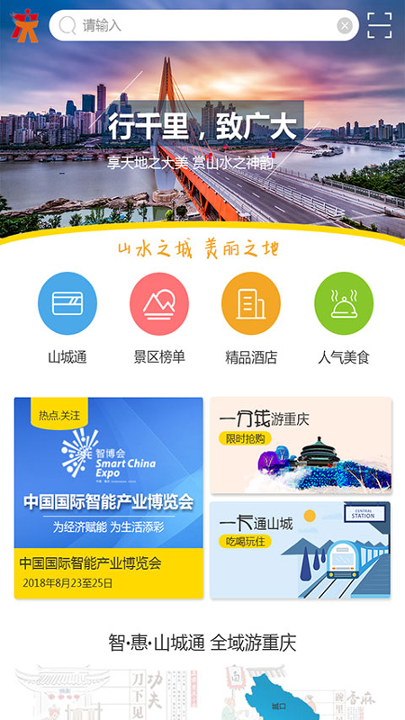 山城通app是重庆市政府官方打造的智慧旅游综合服务平台,致力于为本地市民和外地游客提供一站式的旅游生活解决方案。作为重庆市全域旅游数字化建设的核心项目,该平台全面整合了重庆地区的餐饮美食、酒店住宿、交通出行、景点游览、购物消费和休闲娱乐等六大核心板块资源,通过智能化服务让每一位用户的重庆之旅更加便捷舒适。