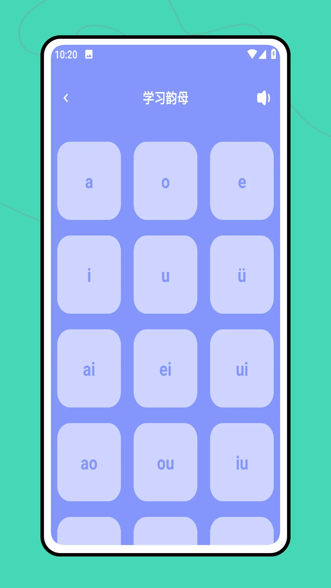 基础发音学习:提供完整的汉语拼音系统,包括声母、韵母和整体认读音节,帮助学习者打好发音基础。点读学习模式:所有学习资料均支持点读功能,点击文字或图片即可播放标准发音,方便跟读练习。