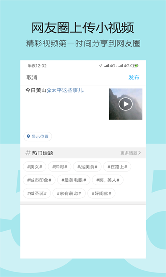 视频分享,支持视频上传,便于视频的配文文字,让内容表达更生动;