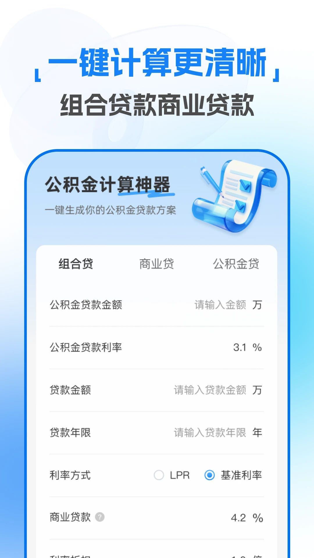 【公积金提取计算助手】是一款专为购房者和贷款用户设计的智能工具,致力于简化公积金相关计算流程。无论是公积金贷款、组合贷款还是商业贷款,用户都能通过该工具快速获取精准计算结果。此外,它还整合了公积金提取指南和房产知识科普,帮助用户掌握房价房租比等关键信息,为购房决策提供数据支持。操作简单、功能全面,是您规划房产投资的得力助手。