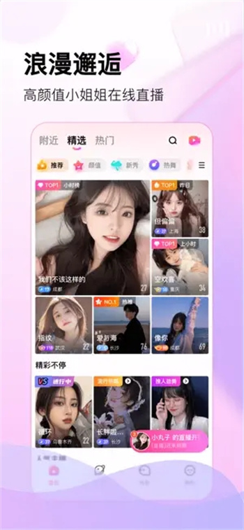 百万高颜值主播24小时不间断直播,涵盖歌舞、聊天、游戏等多种类型。平台严格筛选主播质量,确保每位用户都能找到心仪的主播。通过智能匹配系统,为你推荐最符合个人喜好的直播内容。