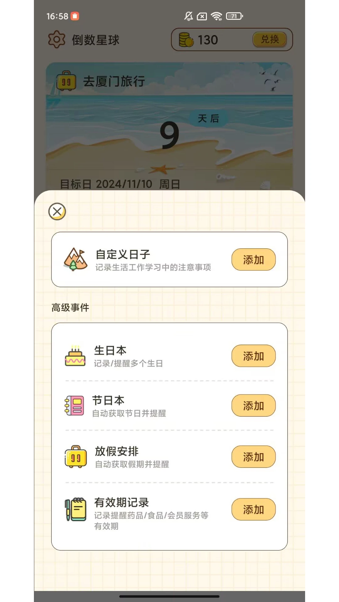 支持分享功能,用户可以将倒计时分享给朋友或家人。
