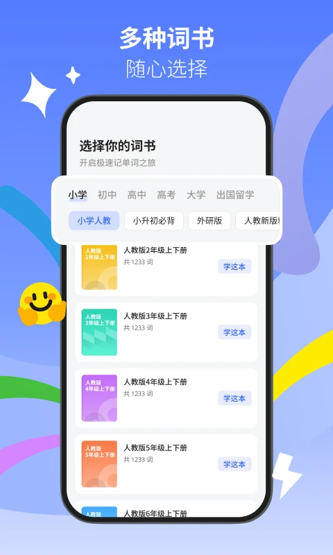 覆盖从小学到留学考试的全阶段词库,一站式解决英语词汇需求