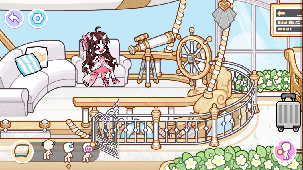 在场景中,点击右下角的角色图标可以召唤出你的虚拟形象,游戏提供了数十种不同风格的角色造型供选择。你可以随时更换角色的发型、服饰和配饰,打造专属于你的个性化形象。所有场景中的物品都可以互动,比如点击梳妆台上的香水瓶会散发香气,打开衣柜可以试穿各种华丽服饰。