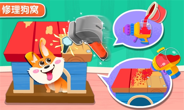 在这个创意工坊里,孩子们可以发挥想象力改造旧物。修理小狗房子需要先诊断问题,选择合适的修补材料,再搭配喜欢的颜色进行粉刷。撕掉旧墙纸后,可以从多种图案中挑选心仪的款式进行装饰。这些活动不仅能激发宝宝创造力,还能培养解决问题的能力和审美意识,让旧物焕发新生。