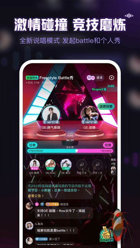 鱼耳app与国内顶尖说唱赛事深度合作,打造专业的说唱社区。在这里,你可以欣赏到地下8英里等知名赛事选手的精彩表演,还能参与线上说唱比赛展示自己的才华。平台提供专业的录音设备和混音工具,让每位热爱说唱的用户都能创作出高质量作品,与志同道合的rapper们交流切磋,共同成长。