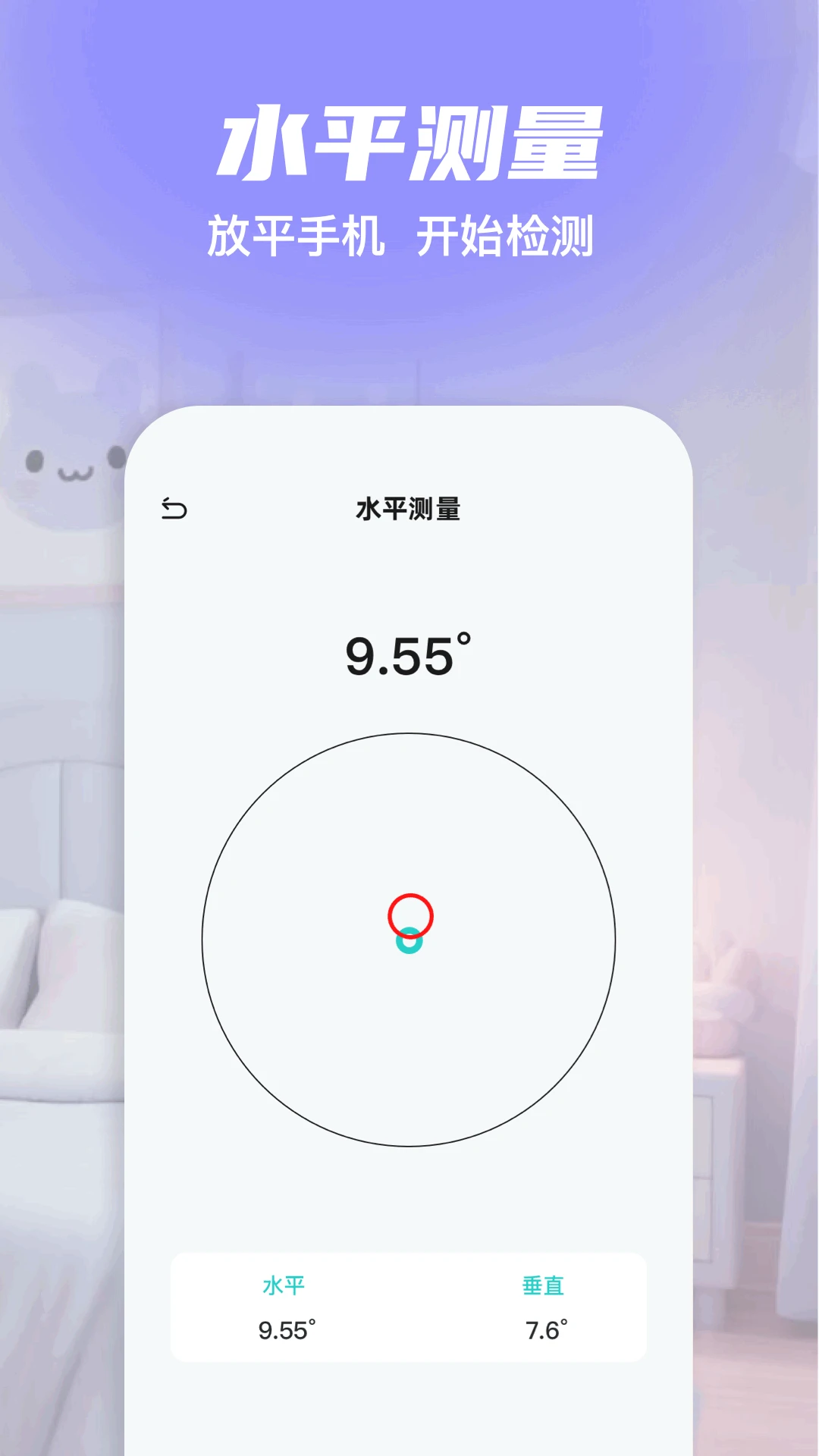 水平测量工具:内置水平仪功能,只需将手机放平即可检测水平状态,适用于地板铺设、家具安装等需求。
