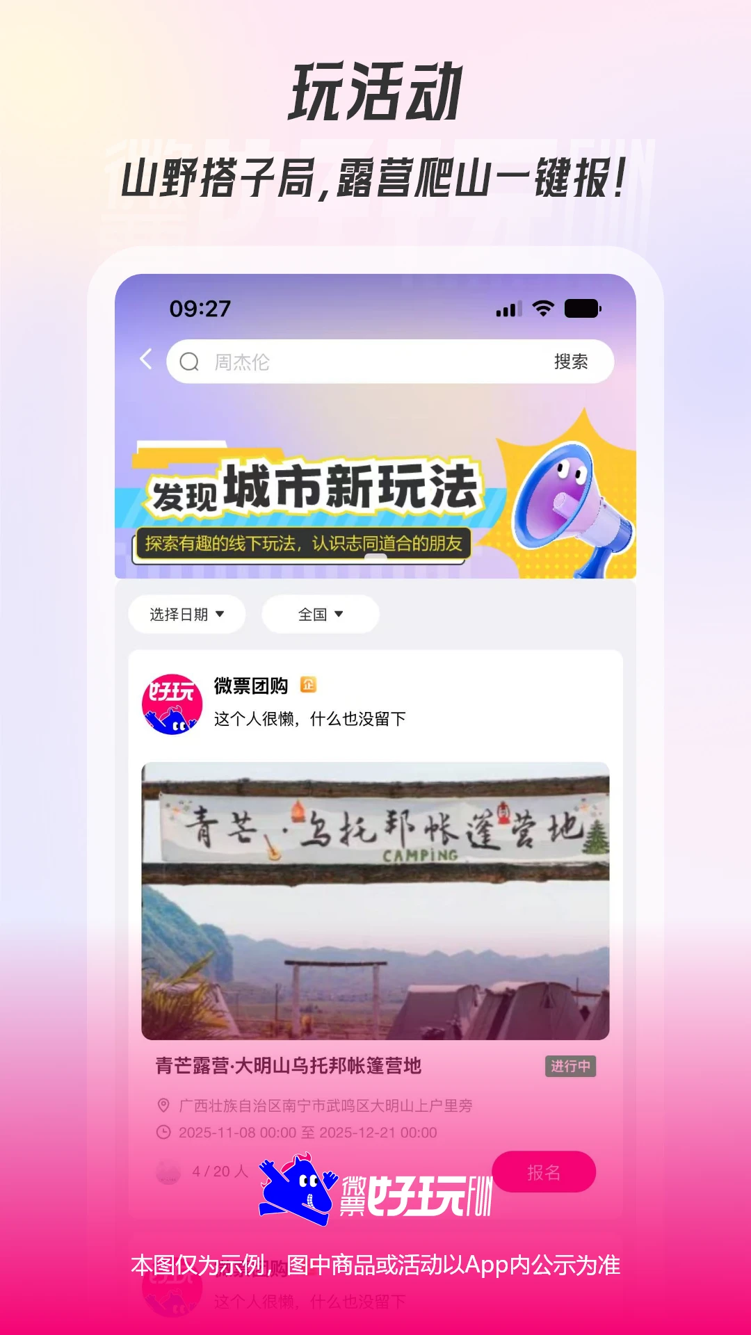 微票好玩App是一个超“好玩”的兴趣生态社区,以「好玩活动」为核心,融合本地及娱乐票务、旅游、达人推荐、内容种草、社交互动、团购交易等多元能力的新型文旅服务平台。