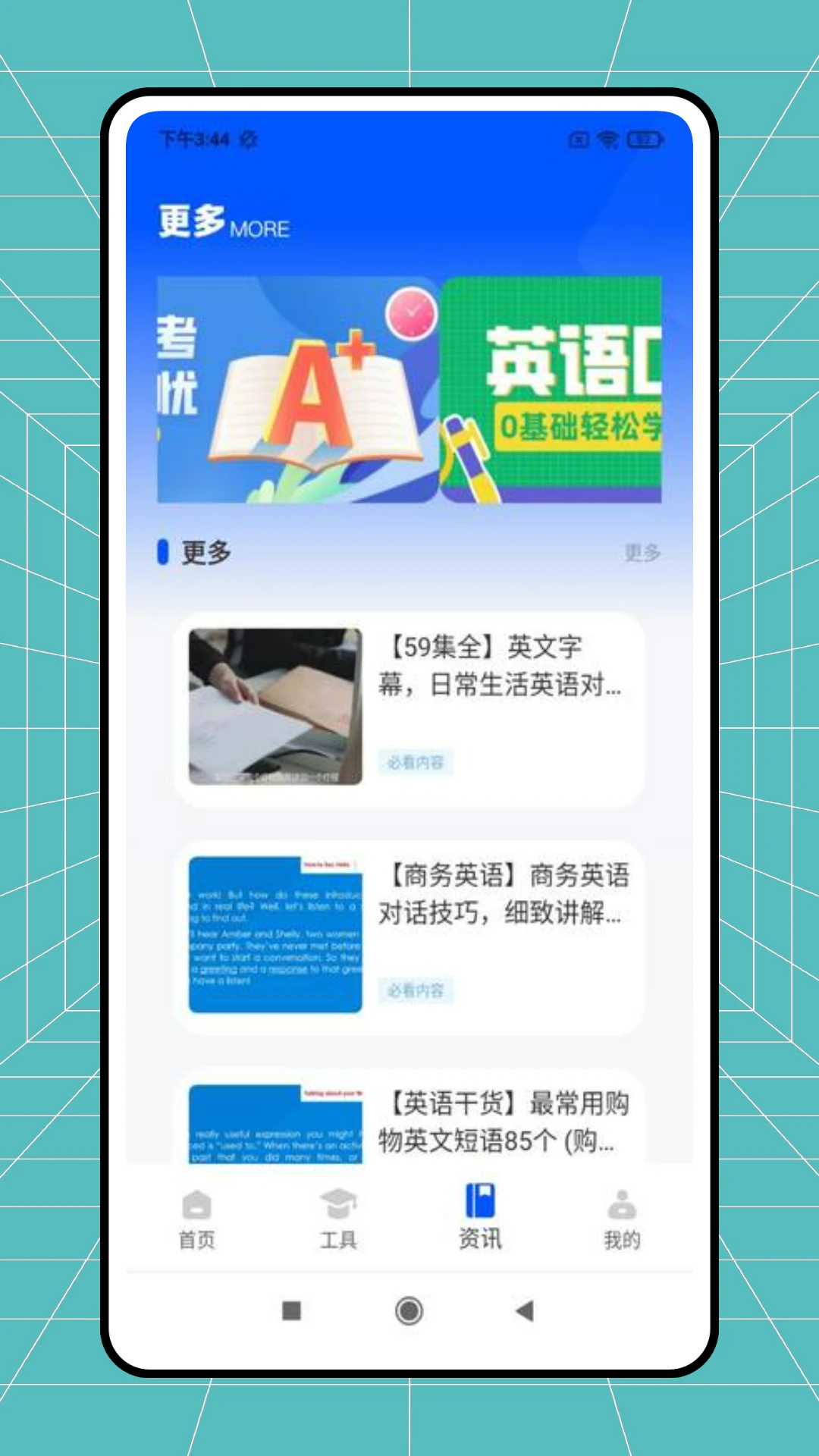 资讯功能:提供英语学习相关的资讯和实用表达,帮助用户拓宽视野。