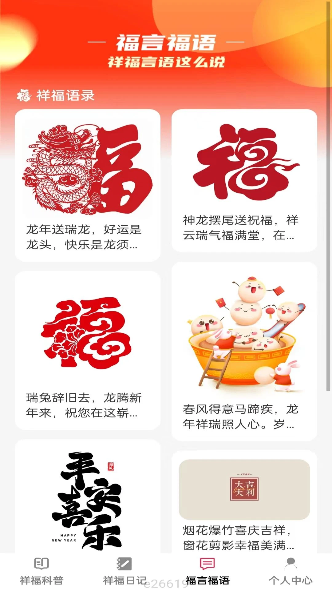 祥福点点是一款融合传统福文化与现代生活方式的创新应用软件,致力于为用户打造充满祥和的数字生活空间。它以"福"为核心,通过丰富的功能模块将吉祥文化融入日常,让用户在快节奏生活中感受传统文化的温暖。无论是想深入了解福文化渊源,还是记录生活中的美好时刻,亦或是获取每日祝福语,这款软件都能满足需求。其精心设计的交互界面和内容体系,让千年福文化以亲切自然的方式触达现代用户,成为传递幸福、培养积极心态的随身伙伴。