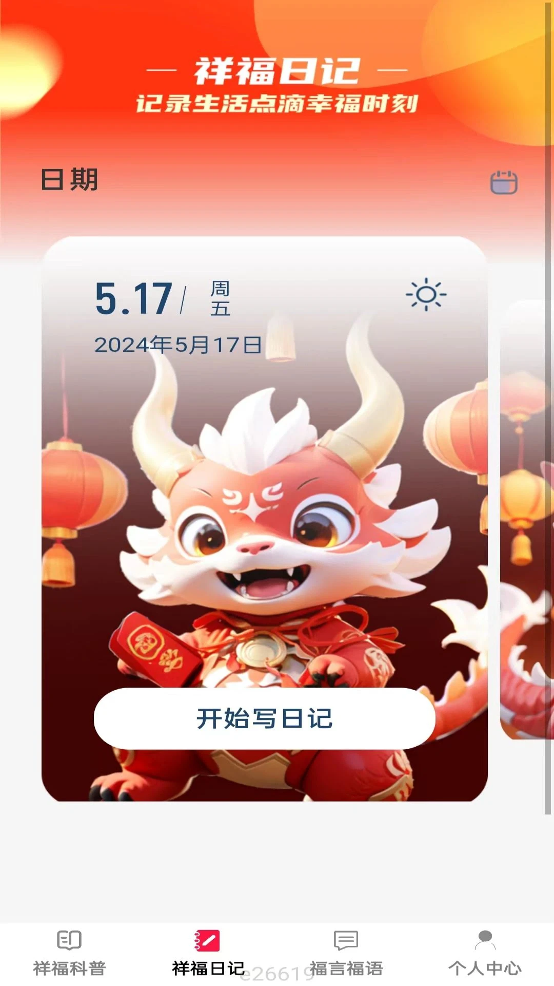 祥福日记功能支持图文记录,可添加时间地点标签,形成个人专属的福气成长轨迹