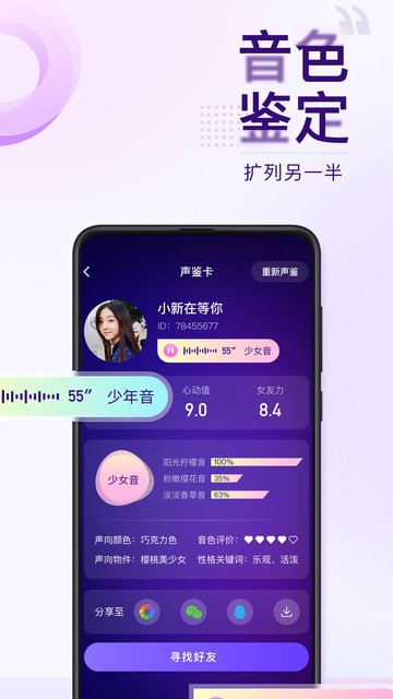 你一开口,能驾驭几种神仙音色?录制你的声鉴卡,试试会引来玩伴还是活宝?专业的声音分析系统,帮你发现声音的独特魅力。
