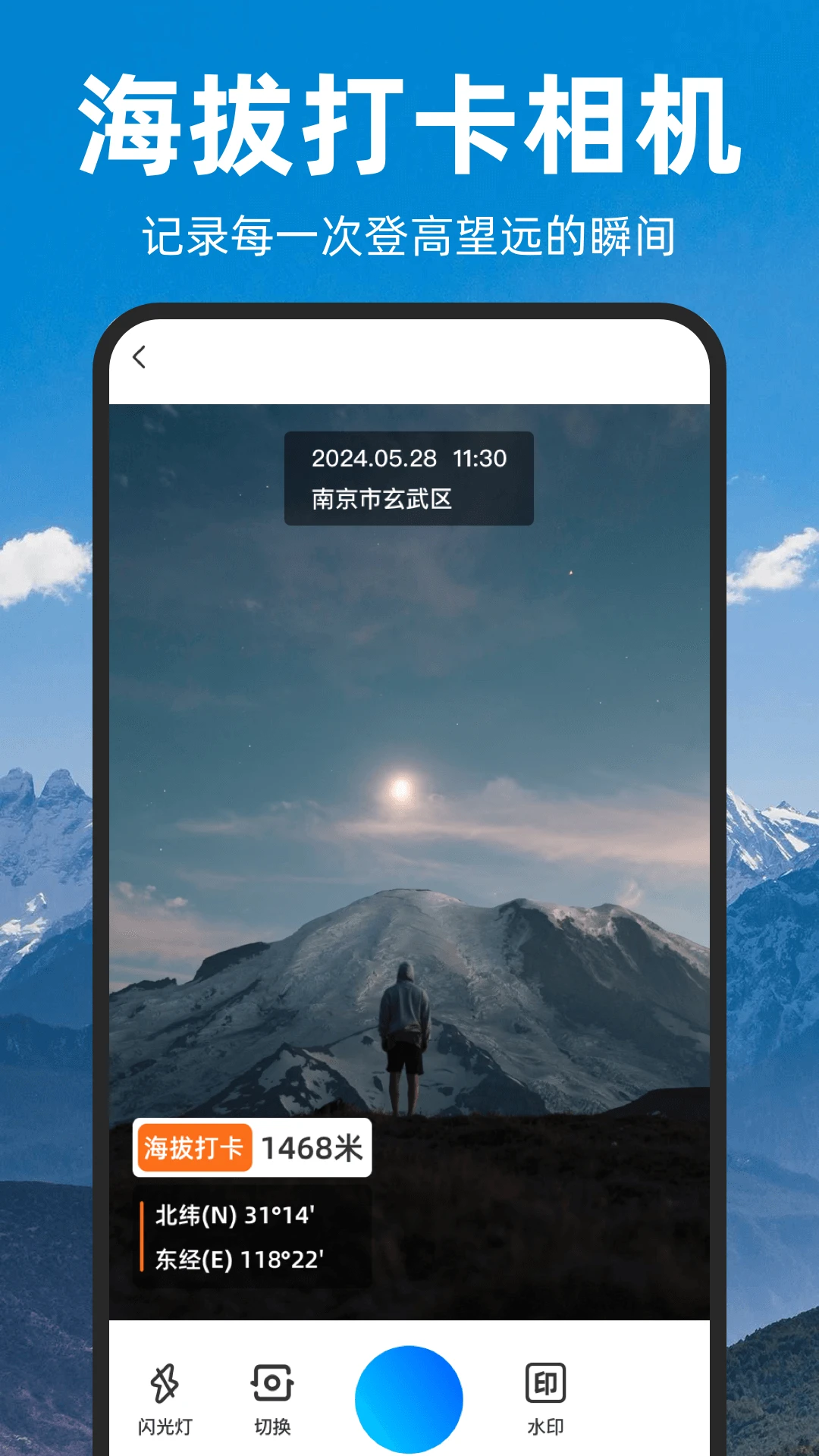 5.海拔水印:为照片添加个性化海拔水印,不仅显示海拔数值,还可自定义样式与位置,让分享更加有趣。