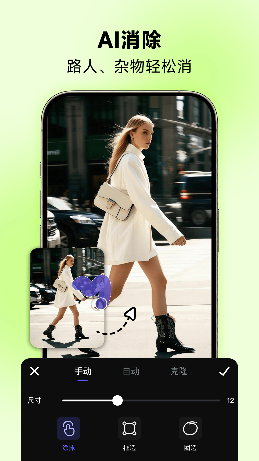 平台还贴心地提供了「AI消除」工具,能智能识别并去除图片中的瑕疵和杂物,保持画面自然和谐;「AI拼图」功能可一键生成营销海报,多种排版样式随心选;「AI扩图」则能智能补全画面,满足不同平台的尺寸要求。