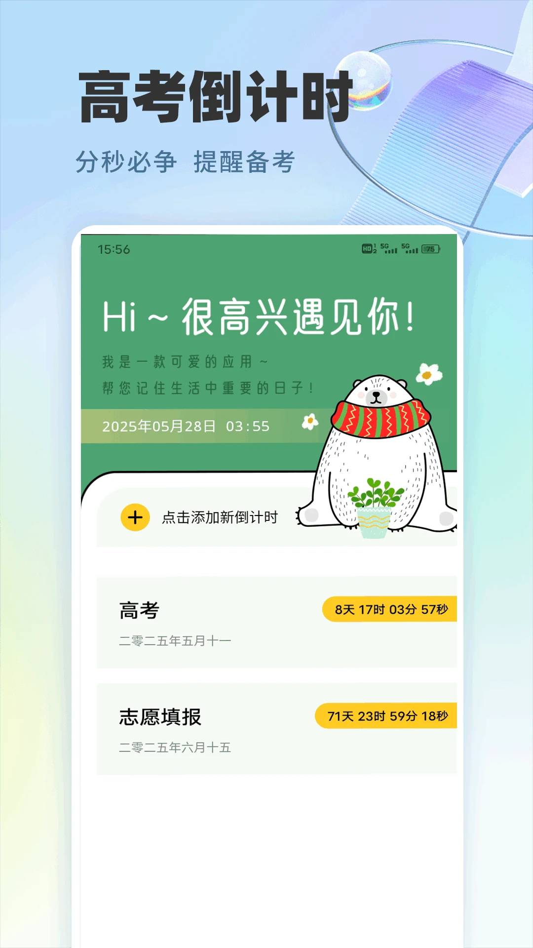 精准高考倒计时功能,实时显示剩余天数并支持桌面小组件