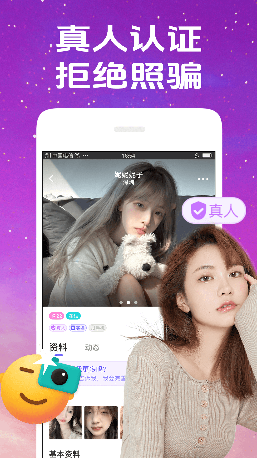 真人认证,资料审核:采用多重身份验证机制,结合人工复核确保用户真实性,从源头保障社交环境的安全纯净。所有注册用户需上传有效证件并通过活体检测,杜绝虚假账号的存在。