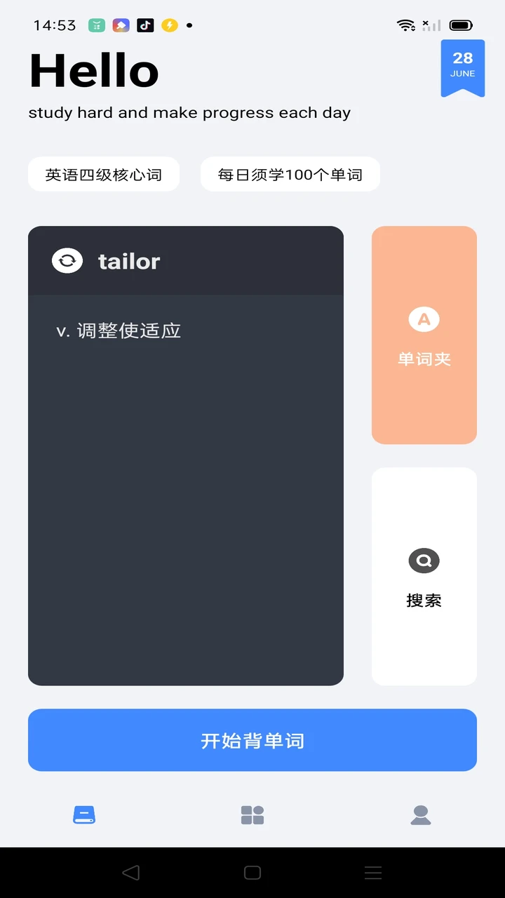 支持多种学习模式,包括单词卡片、拼写练习和听力训练。