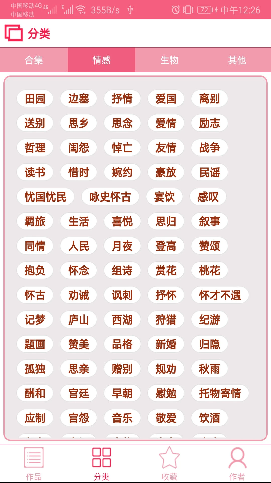 界面采用古典素雅风格,与古诗词的文化氛围完美契合,提升用户的学习体验。内容分类齐全,涵盖不同朝代、题材和风格的诗词,满足不同用户的阅读需求。