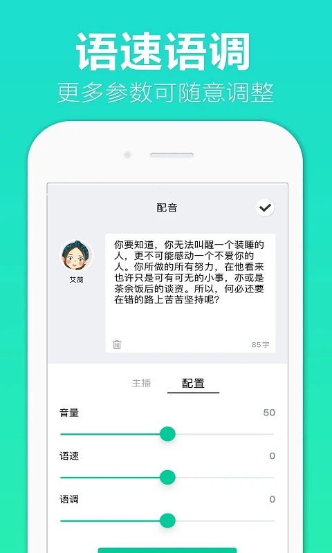 可调节语音速度、语调、音量,实现声音定制
