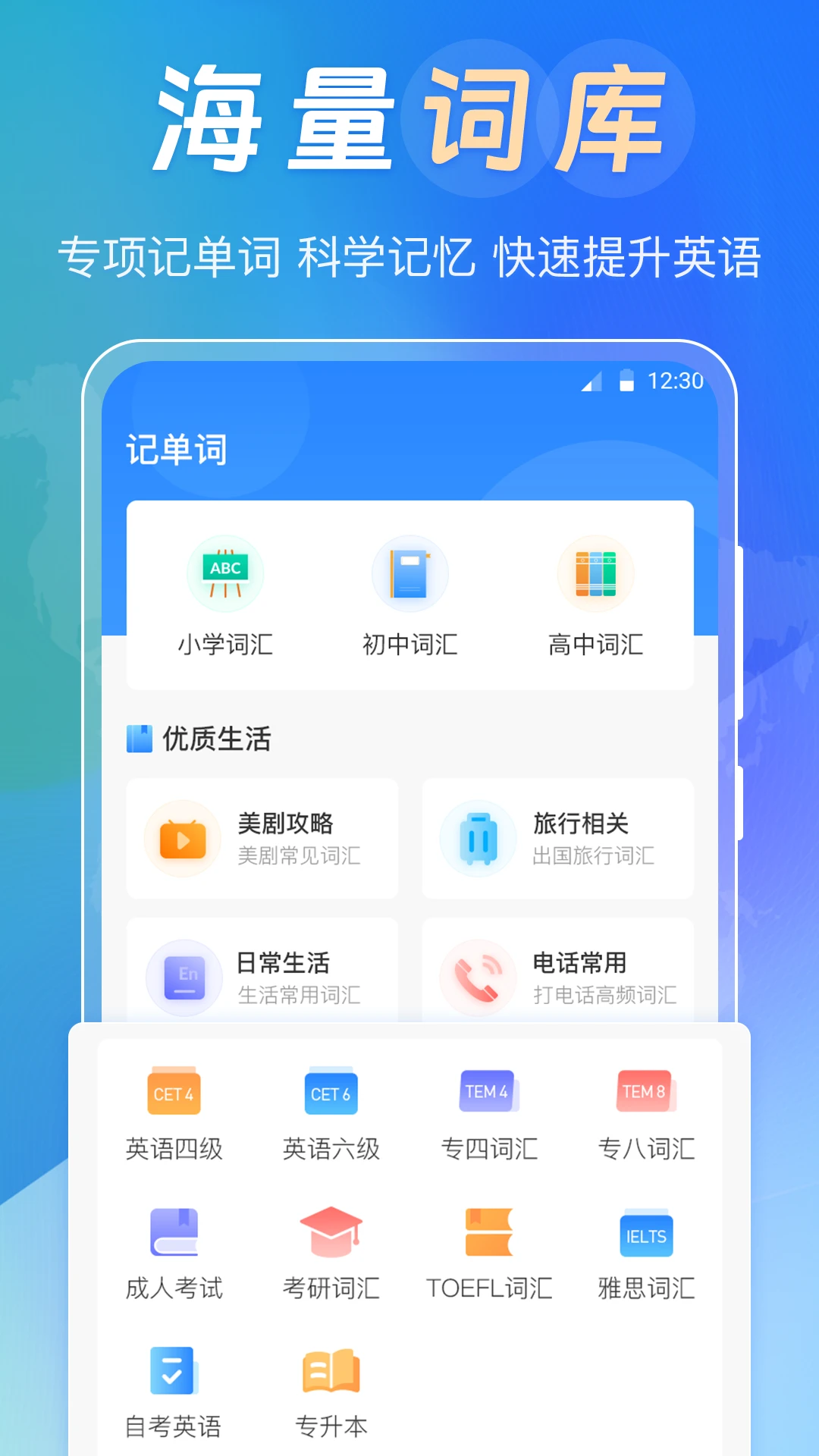 海量词汇数据库,涵盖词根词缀、同义词辨析、词组用例等丰富资源。