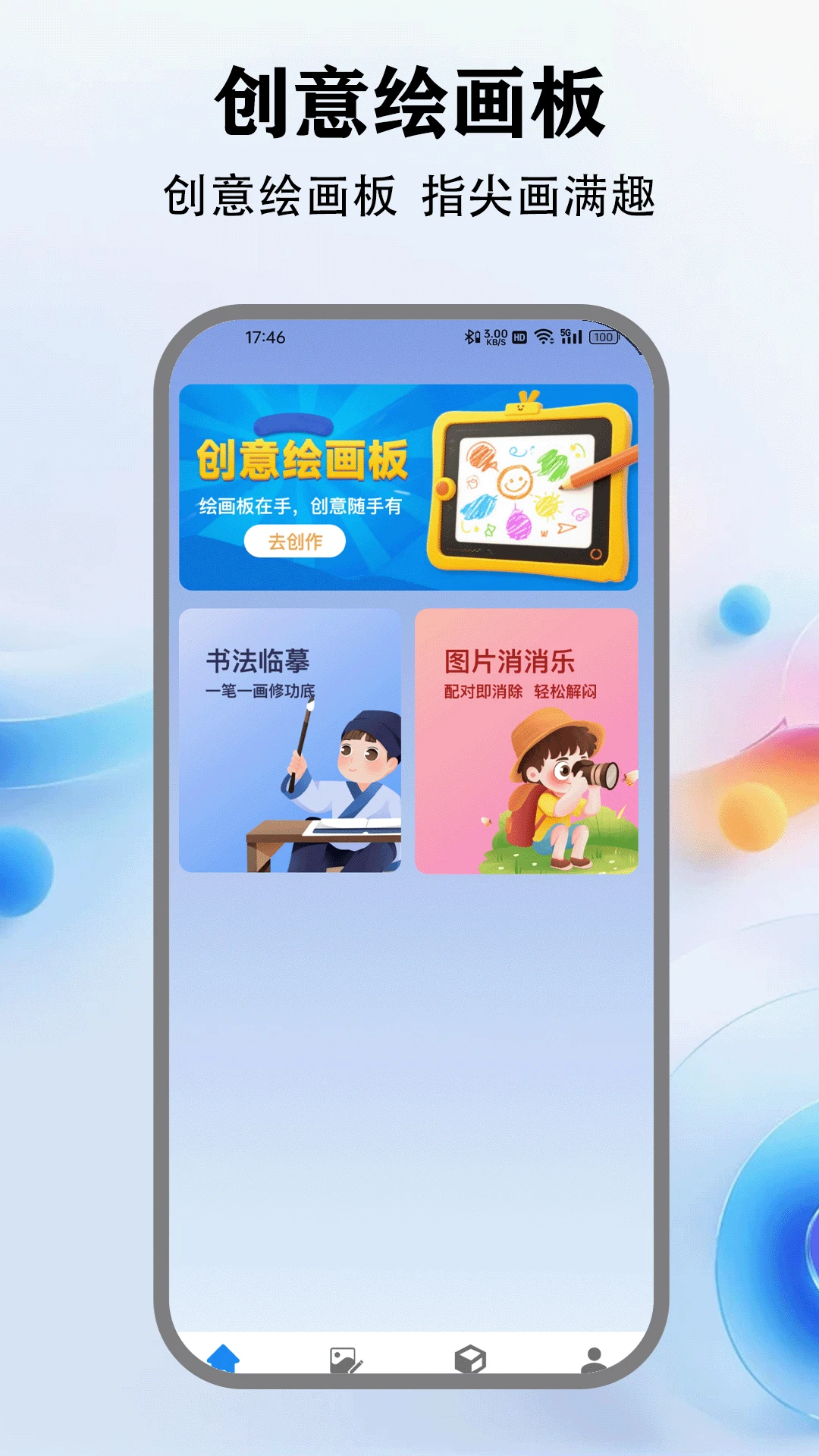 提供创意绘画板、书法笔刷临摹、全能图片编辑与格式转换工具,并集成建模入门教程,一站式满足从二维绘画、图像处理到三维建模启蒙的全链路数字创作需求。