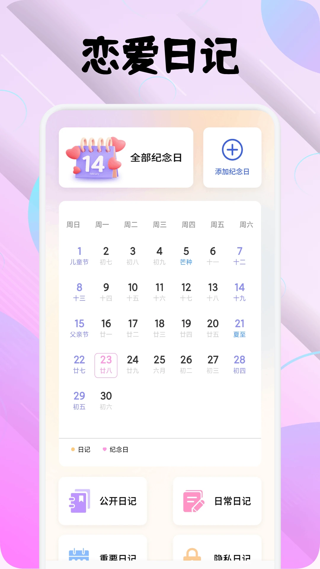 私密日记空间:提供加密日记功能,记录恋爱中的喜怒哀乐与成长感悟