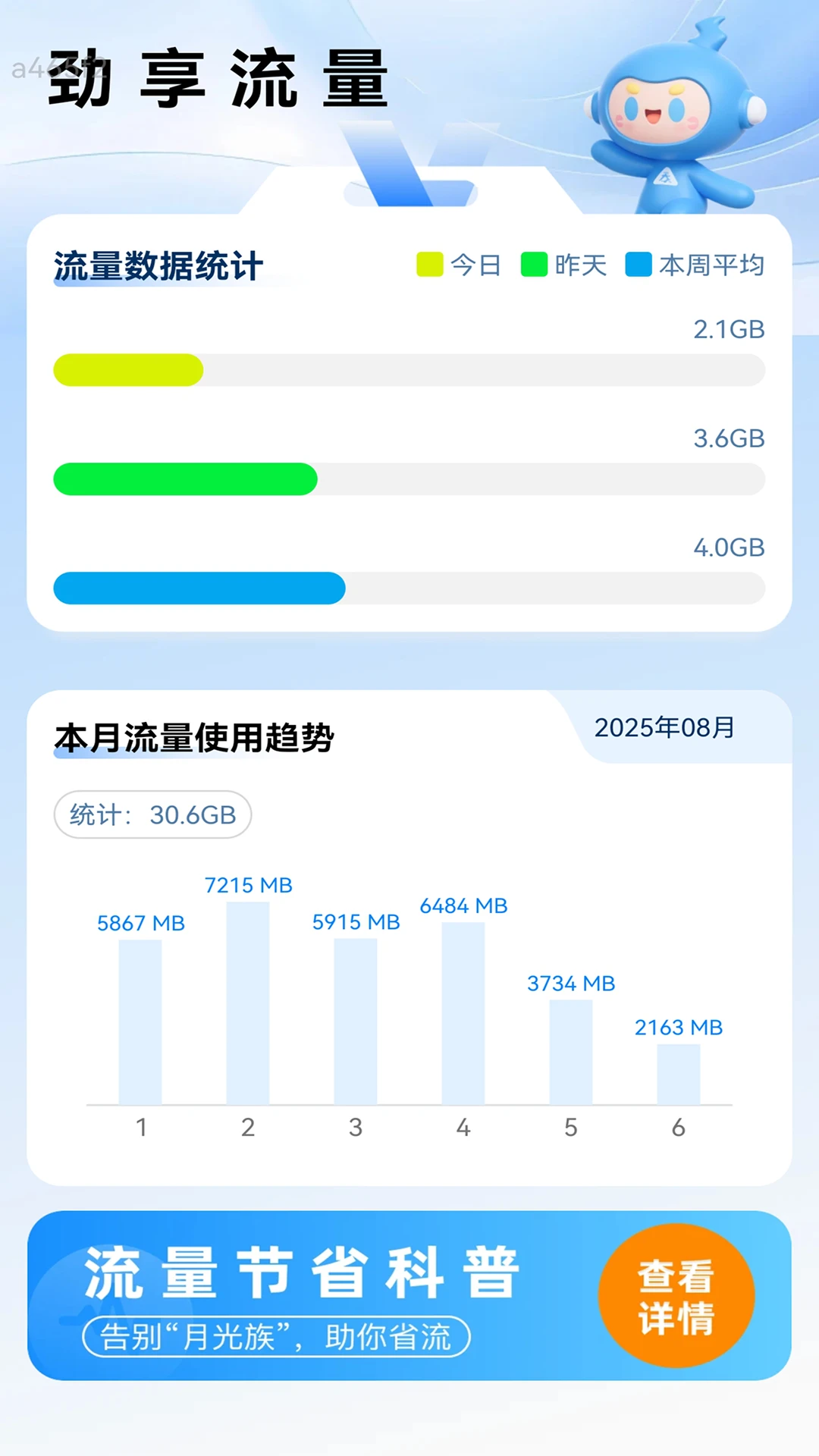 还在为流量偷偷溜走、话费不知不觉超标而烦恼吗?劲享流量,专为精打细算的你打造!我们不止帮你劲省流量,更让你劲享清晰掌控的畅快!1、劲省科普,告别月光!