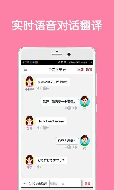 同声翻译功能:支持实时语音翻译,用户只需说话即可快速获得翻译结果,无需手动输入。