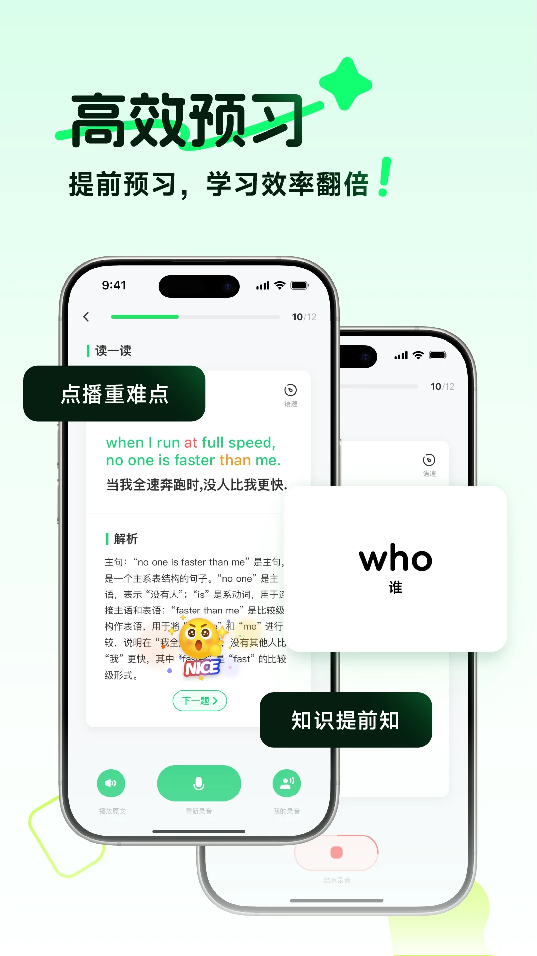 智能点读功能,支持课本内容即点即读,哪里不会点哪里