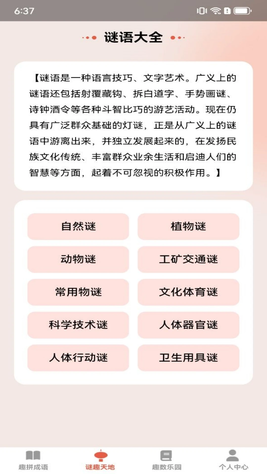 猜谜语模块:通过丰富的谜题和挑战,锻炼用户的思维能力和逻辑推理能力。