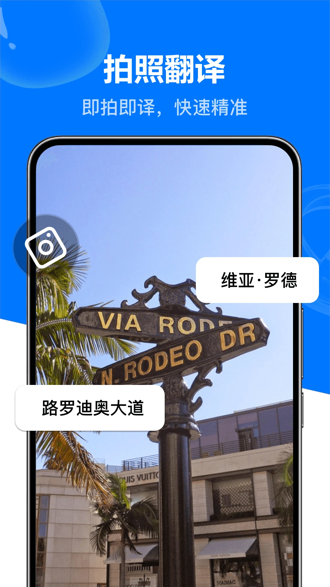 拍照翻译:只需用手机拍摄文字,软件即可快速翻译成目标语言,适用于菜单、路牌等场景。