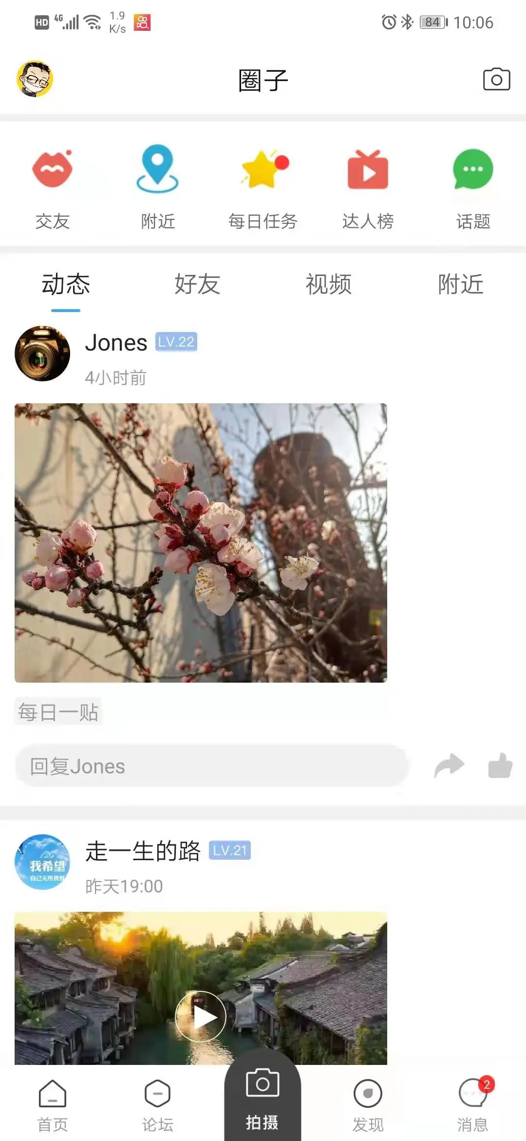 兴趣圈子互动:摄影、美食等垂直社群,用户可创建专属话题小组