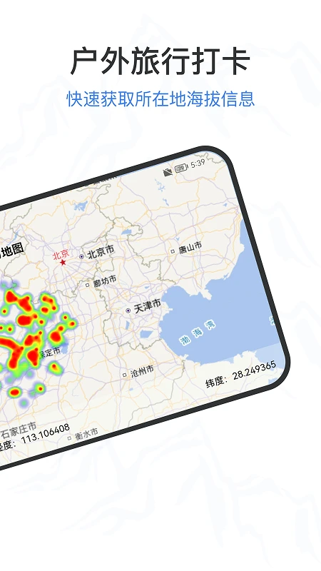 测海拔高度是一款集海拔高度测量、精准经纬度定位、实时天气查询于一体的户外工具APP。可快速获取当前海拔数据并生成动态热力图,每一个红点,都是一份信任,20万份信任汇聚成一个海拔热力图!功能特色: