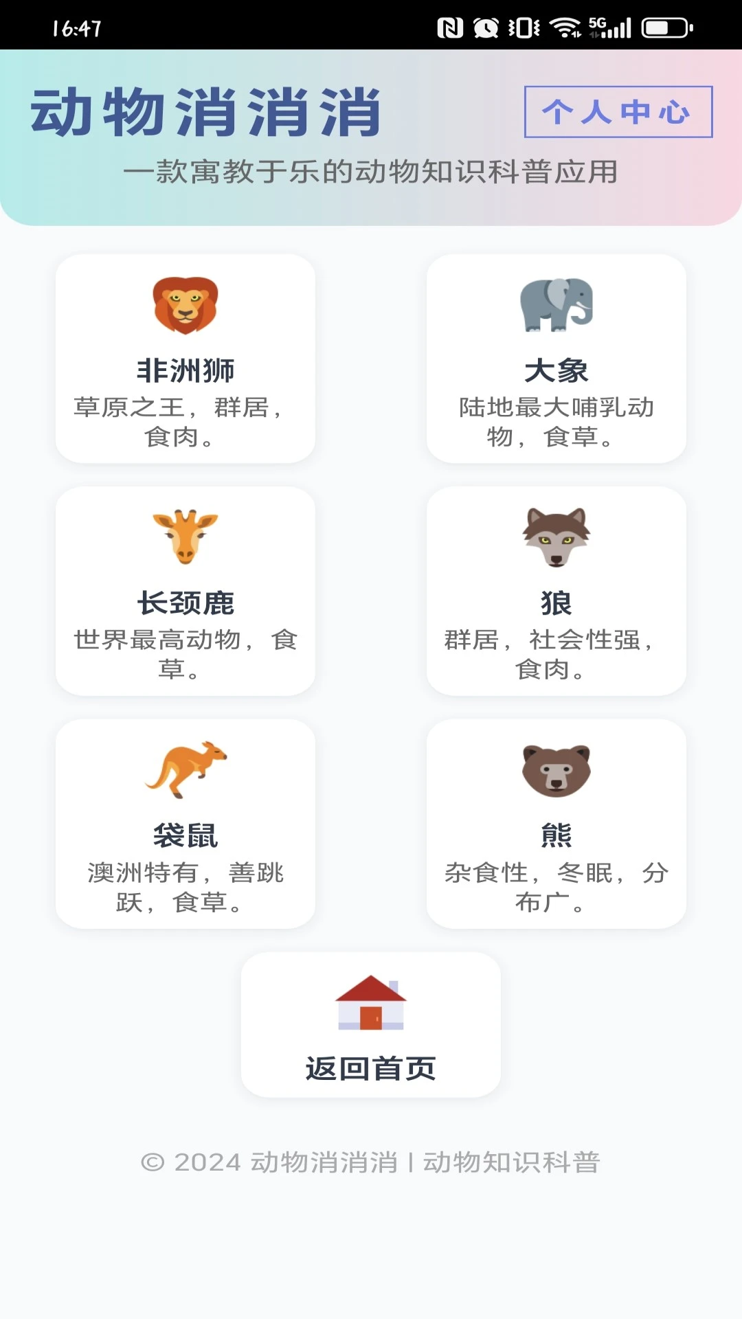 动物消消消一款动物知识科普APP!带你认识全球奇趣动物。每关解锁新物种,配有趣味冷知识和高清图鉴,让孩子在游戏中轻松学习动物习性等科普内容