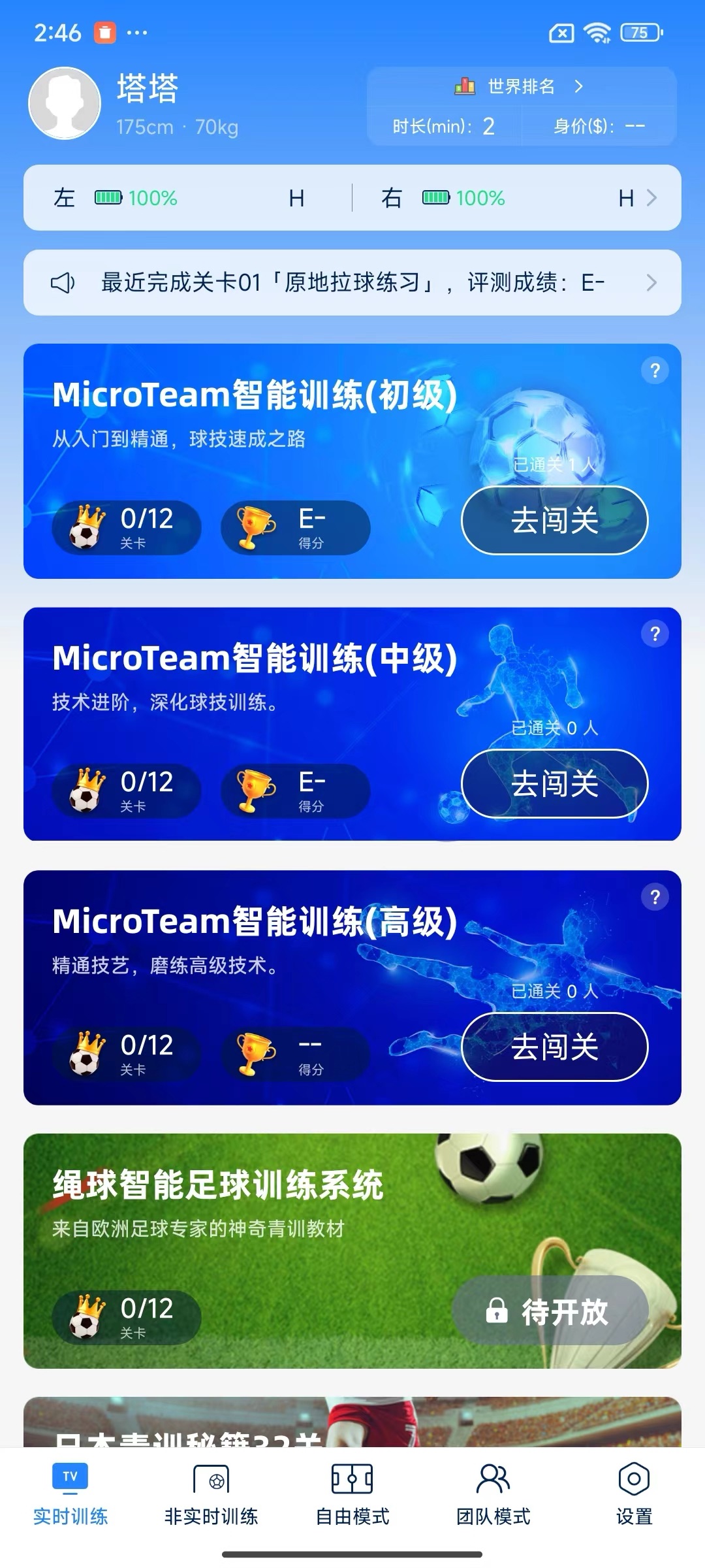 家庭足球训练系统在APP端训练大模型的强大支持下,突破天气和场地限制,实现全年无休的专业训练。全球顶级青少年训练课件库包含F风火轮系列(16关)和H后羿系列(24关)等专业课程体系,并持续更新扩展训练内容。智能陪练功能24小时待命,通过语音指导和动作纠正,解决传统教练水平参差不齐、训练时间有限等问题。系统还能根据用户表现智能推荐训练计划,记录长期进步曲线,让每个训练阶段都有明确目标和成就感。