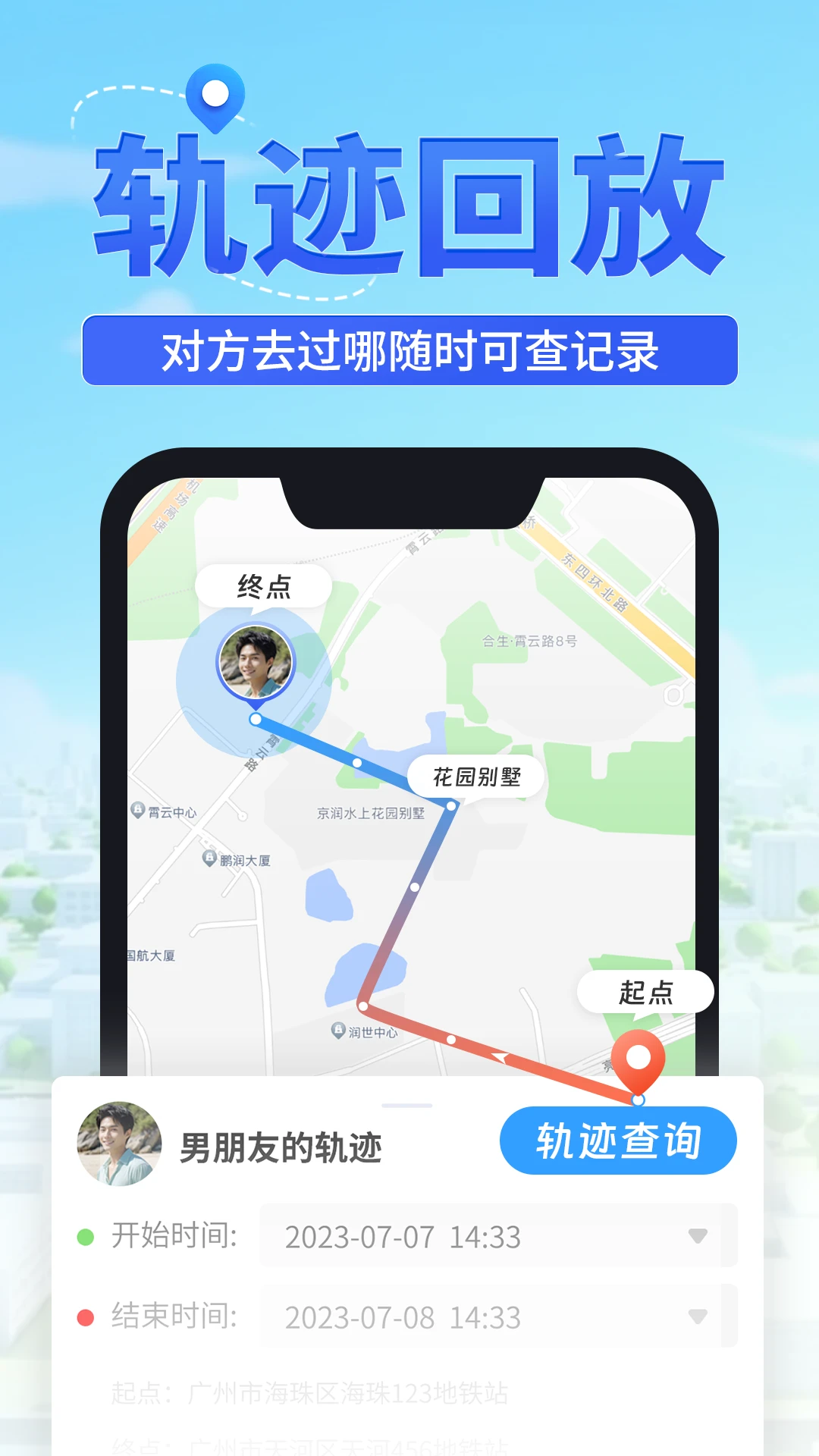 -轨迹查询:支持查看历史定位轨迹,随时关注亲友的足迹路线