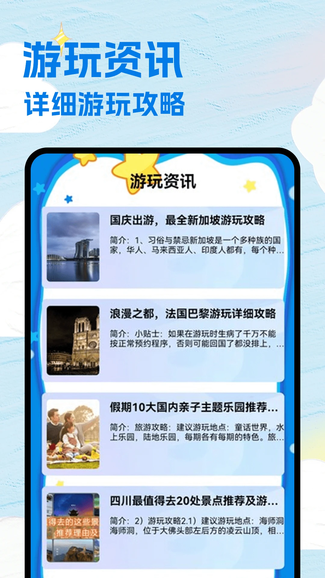 聚合乐园所在地实时天气、游玩路线攻略、设施实拍图库及游玩资讯,支持自定义行程笔记。从行前规划到现场打卡,亲子游、闺蜜行、情侣约会的全能智慧导游!