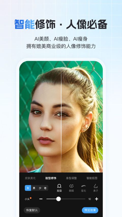 搭载先进的AI美颜算法,具备商业级的人像修饰能力。从基础的皮肤美化到专业的五官调整,都能轻松实现自然美观的效果。