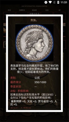 回合制策略游戏:在每一个游戏回合中追溯罗马历史上最重大的事件,运用最佳策略来治理帝国。游戏完美还原了古罗马的政治体系,玩家需要平衡元老院、平民和军队的关系,通过外交手段或军事征服来扩大影响力。