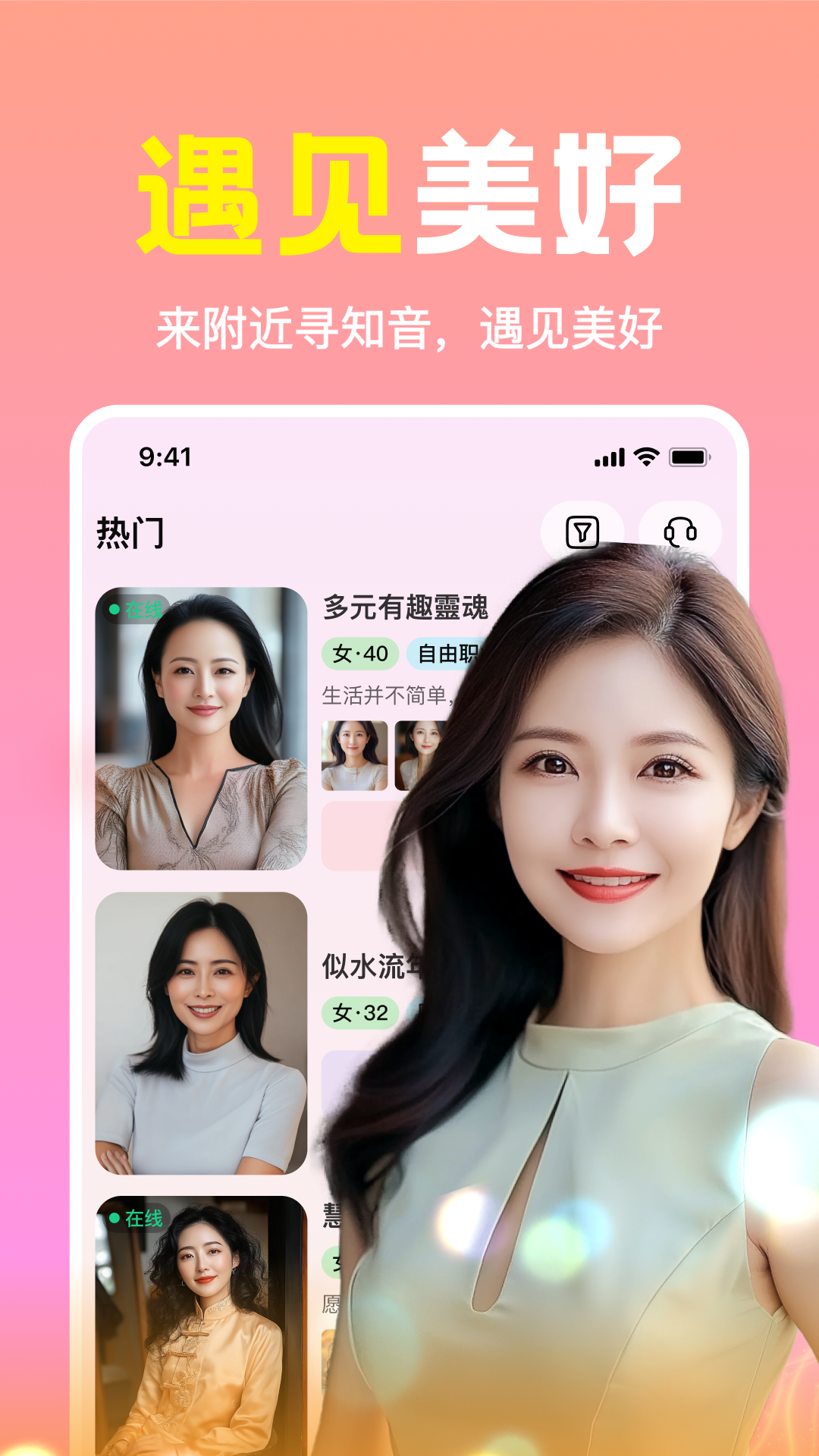 附近寻知音是一款专注于兴趣交友的社交APP,致力于帮助用户找到志同道合的朋友。通过智能算法分析用户的兴趣爱好和社交偏好,APP会精准推荐与您匹配度高的用户,让您轻松开启有意义的深度社交。无论是寻找聊天伙伴、分享共同爱好,还是结识新朋友,附近寻知音都能为您提供优质的社交体验。