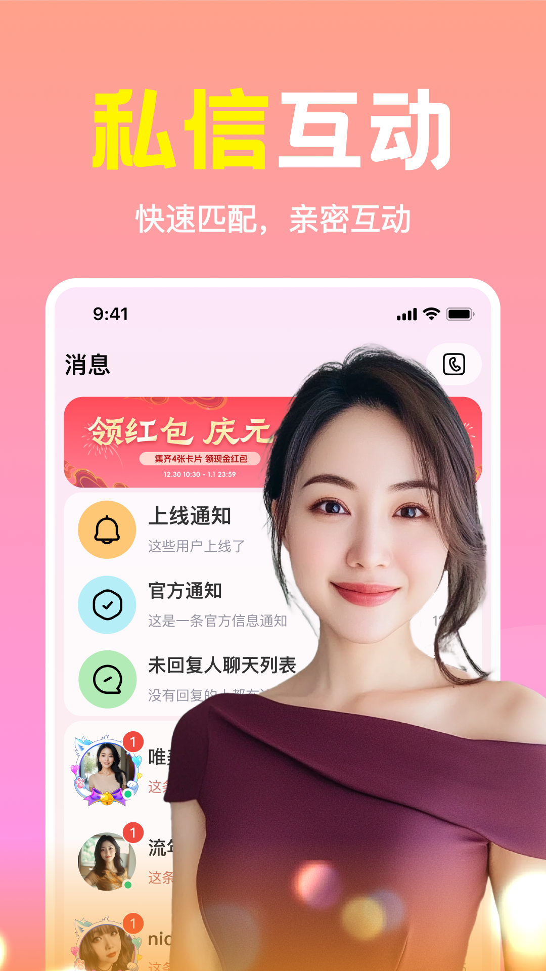 【遇见美好】功能让您有机会结识各种有趣的聊天伙伴。无论您是想找人分享生活点滴,还是想讨论共同爱好,都能在这里找到合适的对象。我们的智能匹配系统会持续为您推荐可能感兴趣的新朋友,让您的社交圈不断扩展。