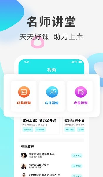 持续更新最新教师考试视频课程和智能题库,涵盖笔试面试全环节;特聘一线名师在线答疑,定期举办专题直播课,让备考过程更轻松高效。