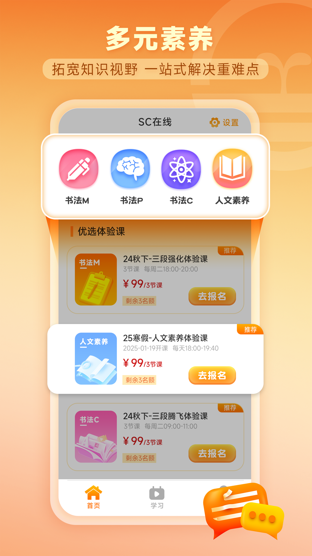 除了学科知识的学习,平台还注重培养学生的综合素养。通过开设思维训练课程、阅读拓展模块和实践活动指导,全面提升学生的逻辑思维、创新能力和实践能力。平台定期更新优质内容,紧跟教育发展趋势,确保学生能够接触到最新、最有价值的学习资源,为未来发展打下坚实基础。