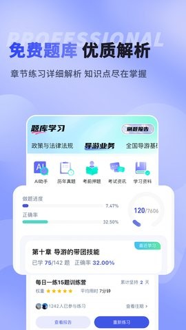 导优优导游资格证是一款专为导游资格考试打造的智能学习软件,拥有海量题库资源,覆盖考试大纲所有知识点。每道题目均配有详细解析,帮助用户深入理解考点,快速掌握核心内容。软件支持分章节练习,针对性提升薄弱环节;独特的模拟面试功能提供专业范文和实战演练,让考生从容应对考试。创新的助记词功能巧妙降低记忆难度,结合智能学习算法,为用户量身定制复习计划,全面提升备考效率,助力考生轻松通过导游资格证考试。