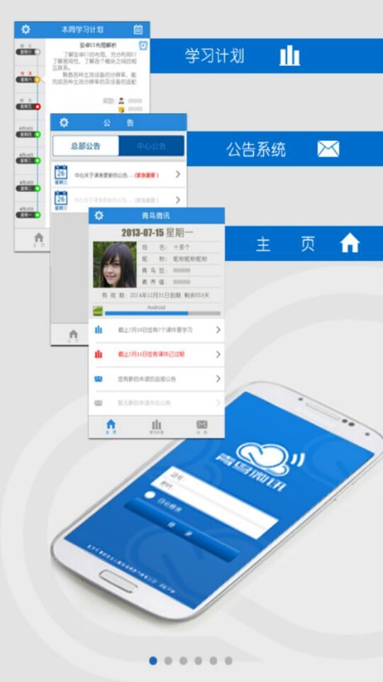 具有随时随地接受青鸟云课堂系统公告、及时查看学习计划、查看个人信息等功能,支持离线查看课程资料,让学习不受网络限制。