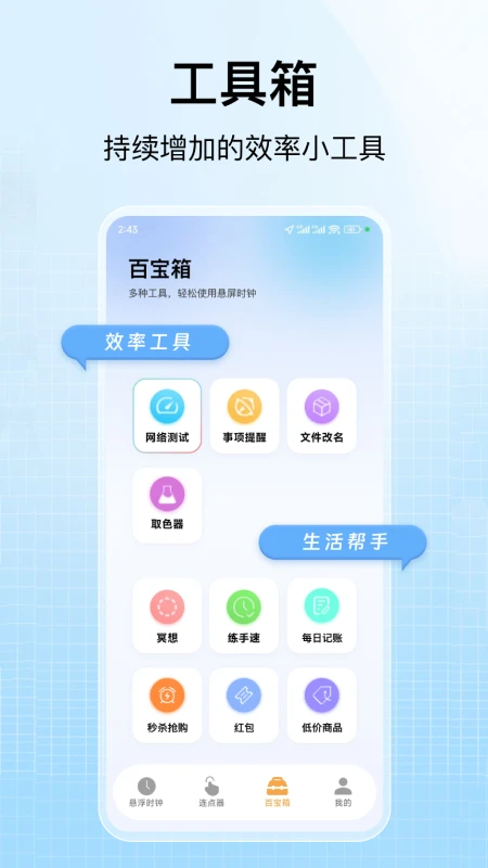 下载悬屏时钟工具箱,让手机秒变效率利器!
