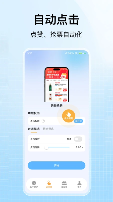 独创的「时间戳悬浮」技术让时钟始终置顶显示,在游戏/视频场景下仍保持0.1秒刷新率。「智能点击大师」模块通过AI学习操作轨迹,可模拟复杂手势操作如滑动、长按组合动作。